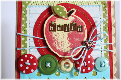 How fun is this?!? To embellish the stamped image, I added letter stickers and gave them a little detail by adding some stitching at the top. I also used a satin stitch of brown floss for the stem and finally added a cut-out leaf. I simply L-O-V-E the way it turned out ♥