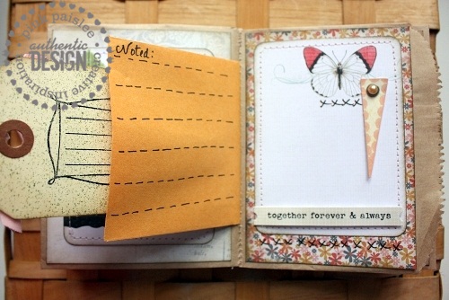 For the coin envelope pockets, I tucked in a standard shipping tag that I had stamped and distressed.